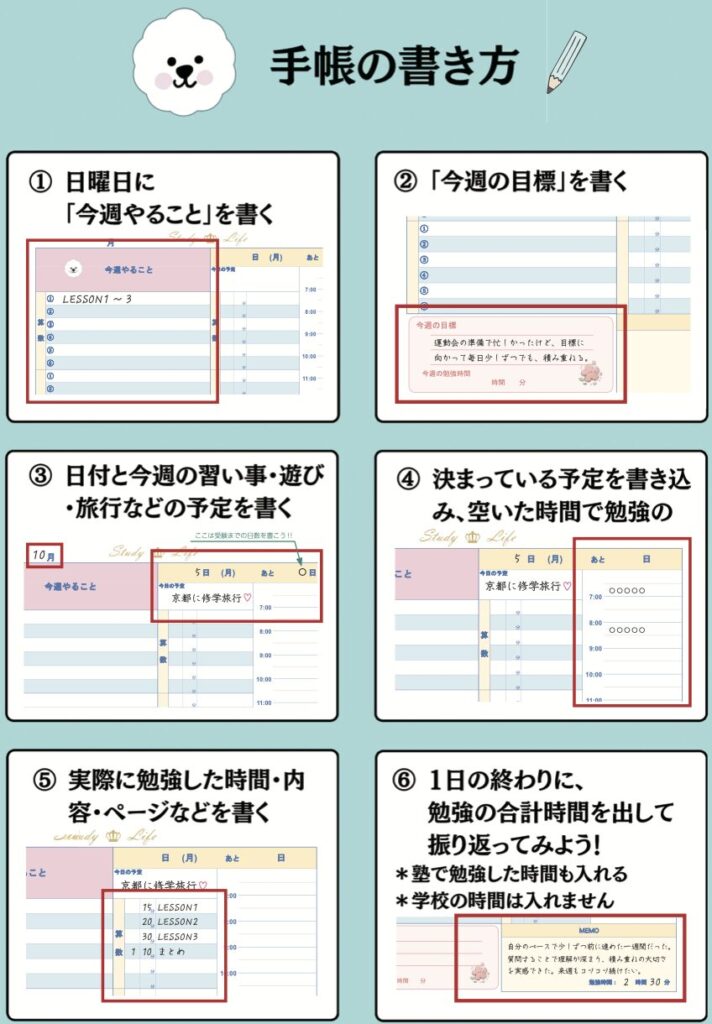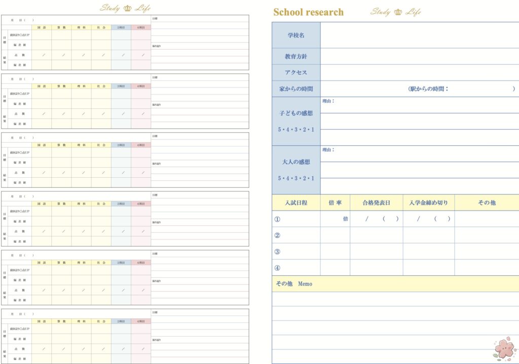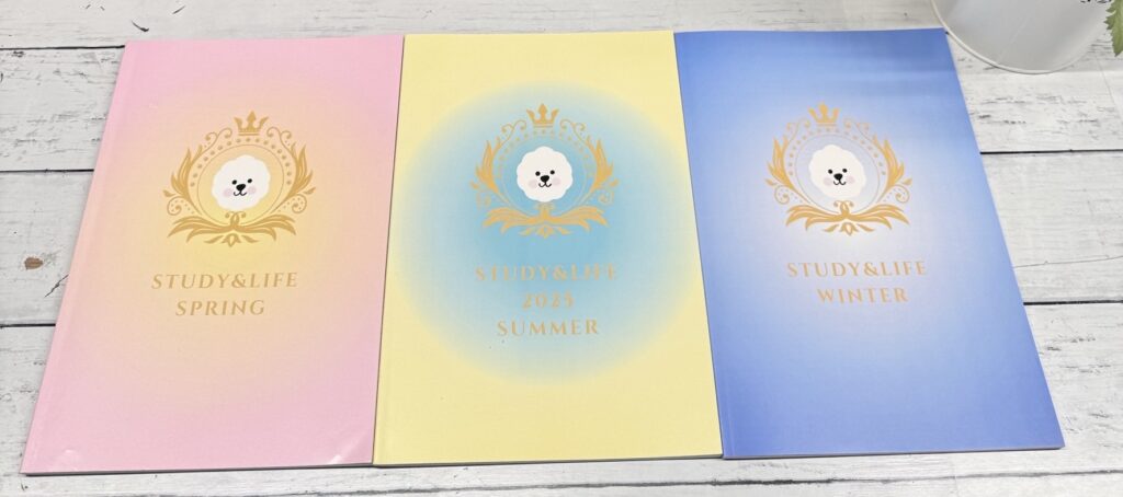 ノートは「SPRING」「SUMMER」「WINTER」と、季節ごとに切り替わります。可愛いカラーでモチベーションをキープしながら、季節講習の節目で気持ちを新たに目標を立て直せます。
